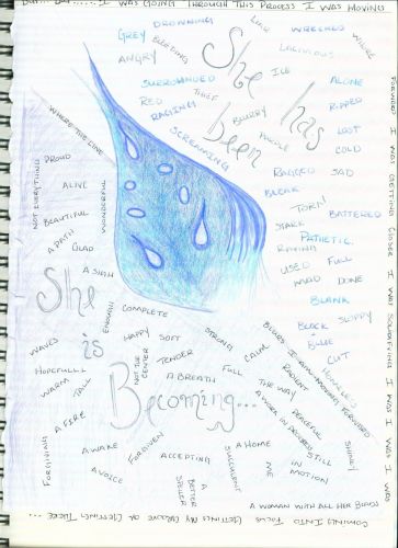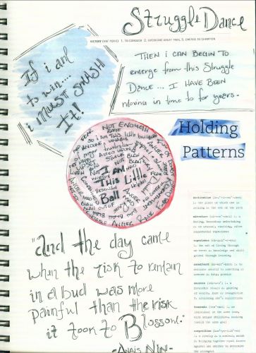 So i have spent some time with the questions posed on monday… it seems to me that i have been balled up or wrapped and trapped in this ball of anger, frustration, stuck-ness, blah-ness and all around discontent. I have been groping around for answers and solutions and and…. But I have been looking to the wrong things and not being true to me and therefore the people in my life. My response in my journal centers around these thoughts and a quote from anais nin- “And the day came when the risk to remain in a bud was more painful than the risk it took to bloom.” So i have decided that it is time to bloom. Now anymore than that I don’t really have any idea… none actually … as in the how… and what now… and and… as you can see I have a tendancy to ramble. Anyway… my response… hope you can see it … but I believe I have given you the general idea. Anyway… thanks for looking and such…..