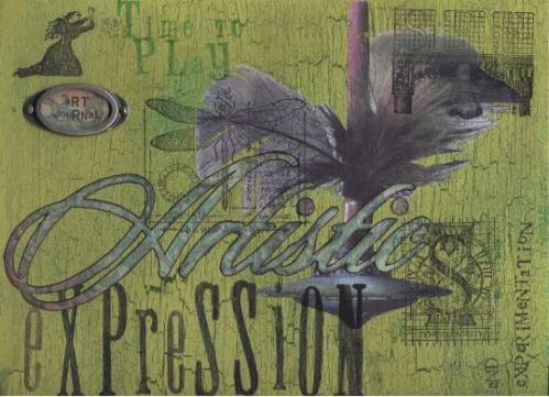 It’s called Artistic Expression and experimentation. Title cut from Basic Grey (sloop script) and MM foam stamps. A few odd stamps scattered about (only ones I’ve never used before!).