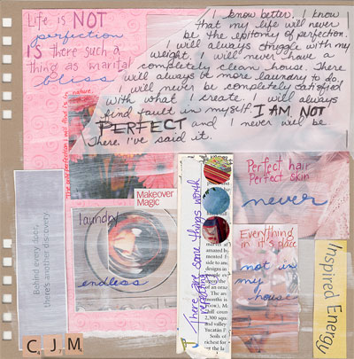 I did this page as a slap in the face to my inner critic. I am tired of trying to live up to my own standards. I decided as soon as I signed up for this class that I want to have fun creating in my journal. I want to write just for fun.