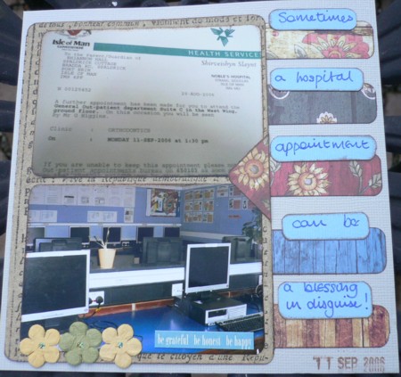 I have had a really busy day playing catch up with my journal, so have several images to upload. This was my entry for Sept 11th. Hidden notes explain that the school network crashed – and just for once I could escape with a legitimate reason! Making it not MY problem for today!!