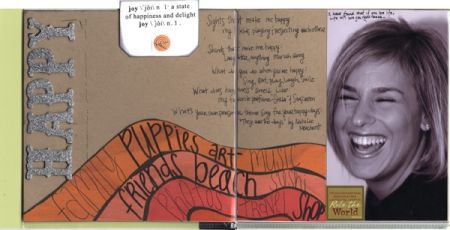 Here is my happy page, I’m thinking of adding some small color photos on the left side. The papers are from Junkitz Laguna line, the glitter letters are also Junkitz and the sticker is 7gypsies. Starting the next section tonight.