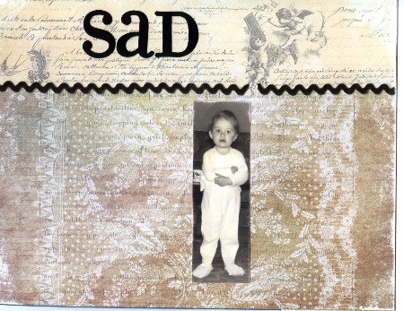 I printed the things that make me sad over and over in gray ink on the paper beneath my photo. Always there, but just barely. I hope they stay that way in life.