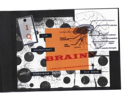 And this is my brainy page. I have used acete sheets printed with a picture of a brain – no pic of me here – I just couldn’t look clever and DH kept laughing whilst we did our photo shoot which of course made me laugh.