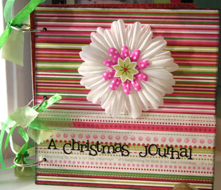 This is my cover. It is a work in progress! The papers are all KI Memories. Flowers are Heidi Swapp, Doodlebug, and KI. The letter stickers are Doodlebug. The cover is sealed with Sparkle ModPodge, which adds glitter to the entire thing.