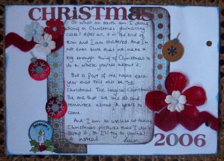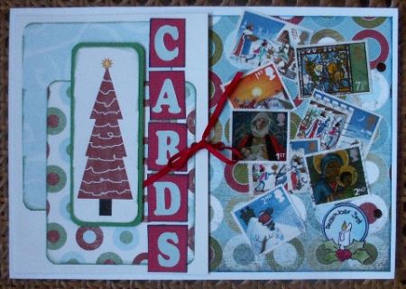 LHS is one of my few card-making efforts. I am so very pants (do you say “pants” in the US? Useless, basically.) at it! Journalling is inside telling how pants I am! RHS is a raid of my altering supplies – Christmas postage stamps from years ago.