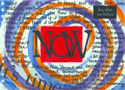 So here is my entry for last week. The journaling is about stepping outside my box and living my “now.”