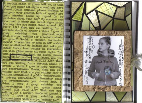 I created the text page with lyrics from a song that COMPLETELY lights a fire under my ass, so to speak. It’s by one of my fave bands, and for some reason they really know how to work their way into my soul with their lyrics. All about the motivation…