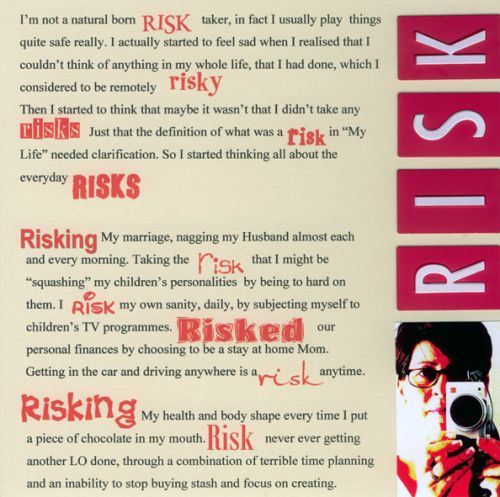 I’m thinking of making this photo an ongoing theme throughout the journal, on some pages it may not be as obvious and I might use different effects on it each time, but I’ve got a feeling it will be making an appearence on every page in some form or another .. not very risky I know but hey I like it ..!!