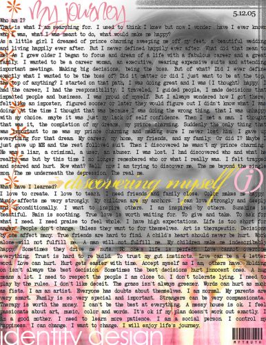 So, this is my post for week 1…I did my first journal page last week but hated it. I used watercolor and pen. Let me just state for the record that I am not skilled in any type of paint medium at all. There was no way I was posting that first page. Then last night new inspiration hit me and this is what came out of it. I did this all digitally, seems to be my best medium.