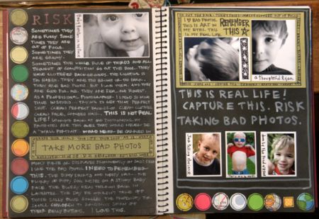 This was hard for me again…why is that? Does this get easier? Come on…I went to art school! Why is this hard!? But it is!!...crazy… Anyway…this week I struggled with the whole concept of risk. It kinda means nothing to me. My friends and family were laughing at that because I take huge risks (drop out of High School then go back and do things my way…start my own business, etc.) and think nothing of it…but I stay up at night and worry about teeny tiny things… who knows. In the end, after sorting through piles of materials (read stalling) I decided to go with the theme of “Risk taking more bad photos”...cuz it’s something I need to do…