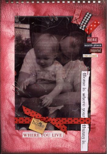 I’ve totally lost track of what week we’re on! Anyhoo, this is my home page (arf!) ....pretty self-explanatory! Home for me is wherever my family is. I’m loving trying new techniques with this journal, I’ve meant to have a shot of this heat embossing on an image ALL year. So thank you for the prompt, Shim!!