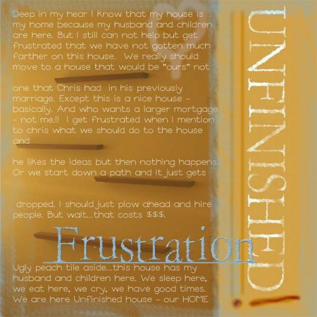 Here is mine for home. First thing I thought of when I read for Home, was how frustrated I get with our unfinished house so I wrote about it. But deep down, I know that my home is really where my husband and kids are (except do I have to claim them today?!). I’m 100% digital so I started with a picture of some shelves we bought from Pottery Barn, had for months, finally put up and now still have nothing on them. Then I just “digi played” from there.