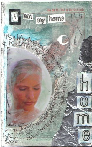 Took a while to finish this…20 mins to make, but a few weeks to decide on my interpretation of the topic. I went with “I am my home” b/c I have been uprooted and replanted soooo many times. I never had and fear I never will have a true “home”, thus my issues w/ insecurity. So one of the things I have drilled into my head over the years is “I am my home, I am my home…”
