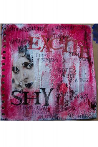 At last I’ve managed to upload my page on the word association topic. Tried a layered ‘peeling paint’ kind of effect over the page and pic and also rubbed in some acrylic paint to the bits I didn’t like! Used some of my responses to the list of words for this page – it was fun!