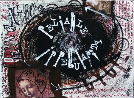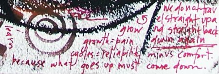 Primarily composed of acrylics and oils, with pen and ink. [It’s interesting that i keep trying to incorporate a lot of color, but end up covering it up each time.] I’ll capture some of my journaling here for you.