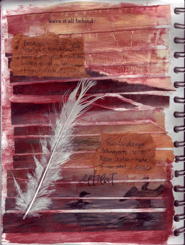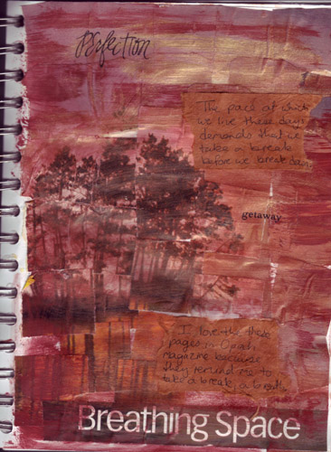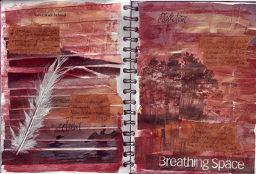 Only later did the ‘break’ prompt come, and I thought these pages were perfect, because they represent peace and retreat to me, and they are broken images. I just loved the serendipity and the dual meanings.