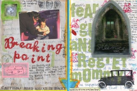 These are my first pages for the Challenge, as I joined late. “Break” was the current prompt when I started. I’m no stranger to art journals, but have been wanted to shake things up a little…be a little more messy, a little more free, a little less concerned with “how it looks”. I am happy to say that I accomplished that with these pages!