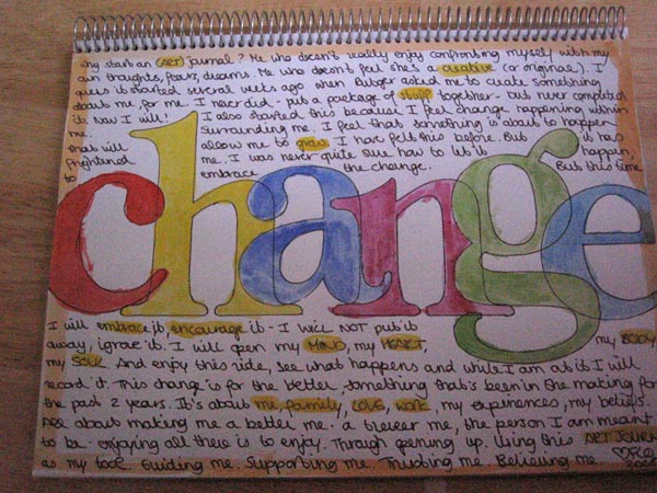 The past few weeks I have been living, breathing change – i feel it’s coming, happening. I have felt it before – but this time I wanted to make sure I record what is happening to me! I am hoping to us this art journal for that exact purpose—to record both my thoughts, feelings visually and with words…..
