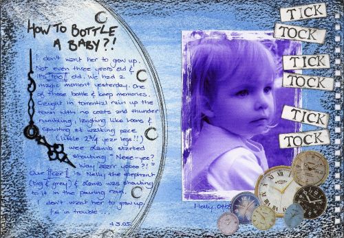 My first real go at the prompts from Monday. What would I keep about my life exactly as it is right now? My daughter. Simple. The photo was a blocked inkjet mistake from last week and I rather liked it so kept it, thought the blue tones went with the blue mood of the wordiness. Clock bits & bobs.
