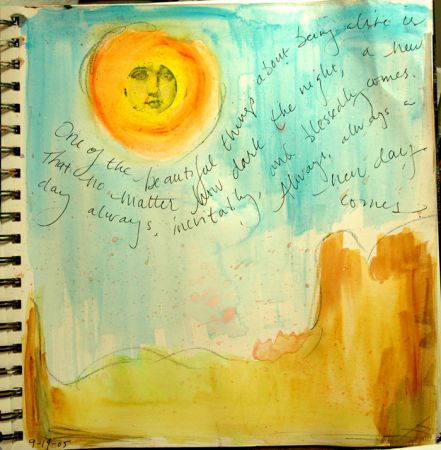A painter I am not, but this is what came out when I thought about the “hope” prompt. The journaling says, “One of the beautiful things about being alive is that no matter how dark the night, a new day always, inevitably, and blessedly comes. Always, always, a new day comes.”